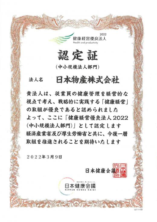 2022年3月に「健康経営優良法人 2022」の認定を