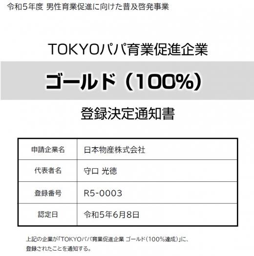 「TOKYOパパ育業促進企業」登録企業 日本物産株式会社ページ