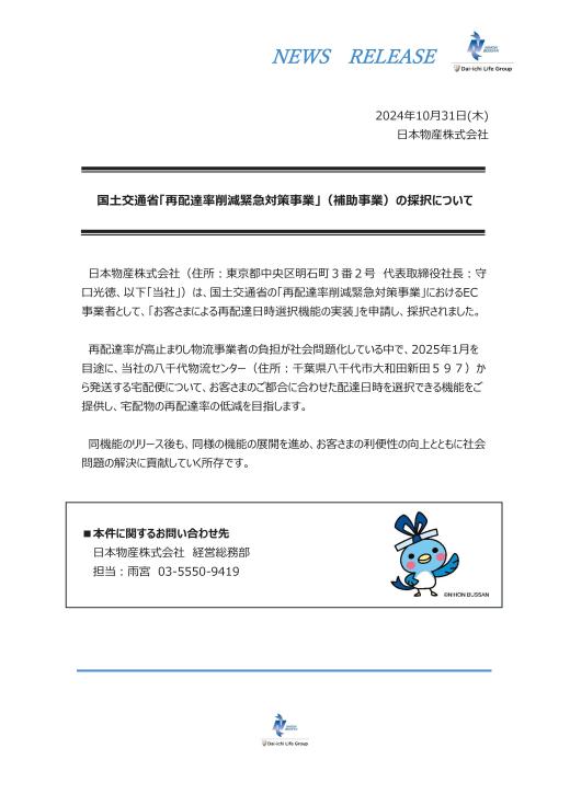 ホーム > 新着情報 > 国土交通省「再配達率削減緊急対策事業」(補助事業)に採択されました