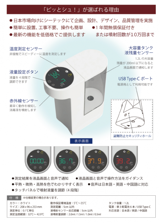 この度、シーテック株式会社と正規代理店契約を結び、非接触型検温・消毒機の「ピッとシュ!」の販売を開始いたしました!