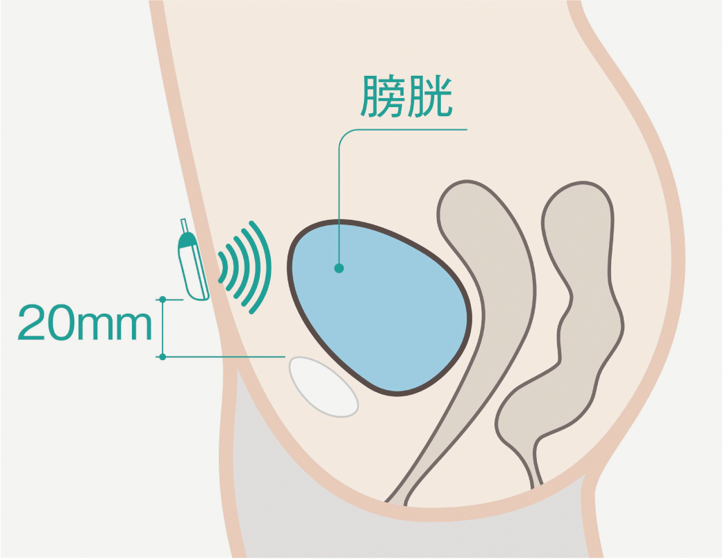 膀胱の位置を知らせてくれるので簡単に装着可能です。