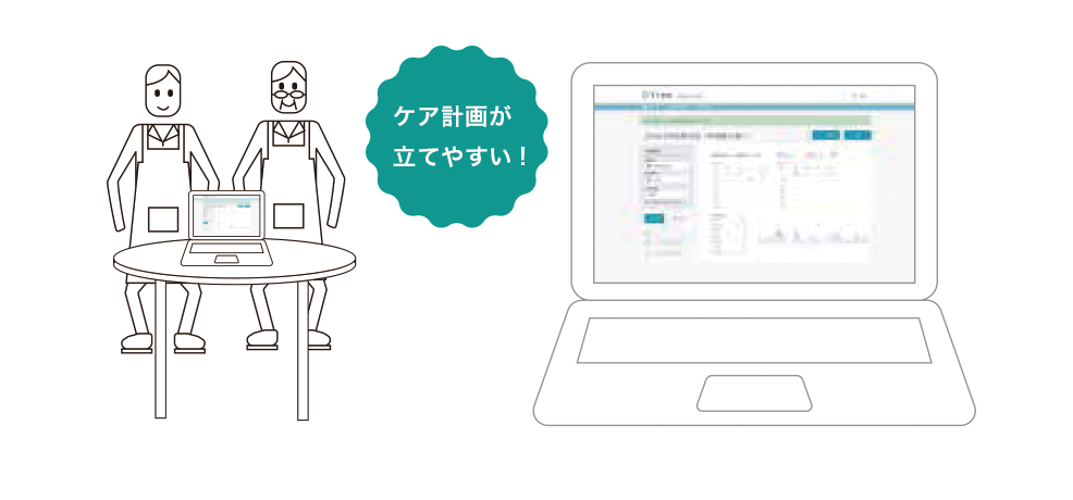 DFreeで収集したデータは「排尿日誌」として閲覧ができるためその方に合わせた排尿ケアの計画立案に役立ちます。