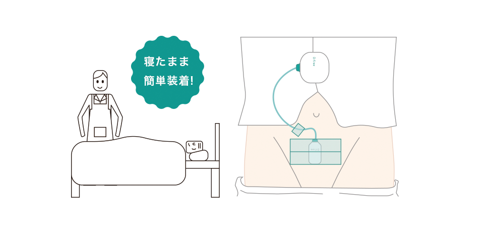 DFreeは、横になったまま装着ができ、入居者様に負担をかけずに簡単に装着ができる設計になってます。